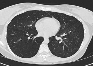 Expiratory (top figure) and Inspiratory (bottom figure) cuts from Chest CT are shown below: